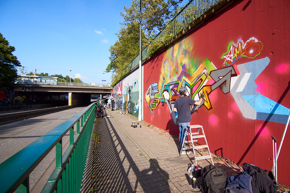 Die Hall of Fame am Dülmener Weg hat eine lange Tradition in Düsseldorf. Die Wände des Opernfundus waren lange eine geduldete Fläche und wurden nun endlich legalisiert.